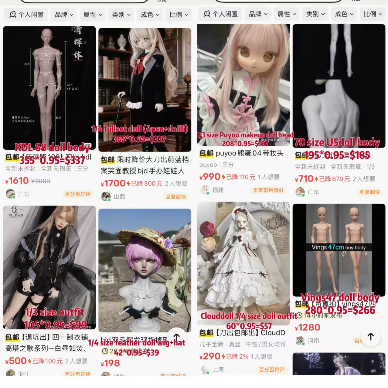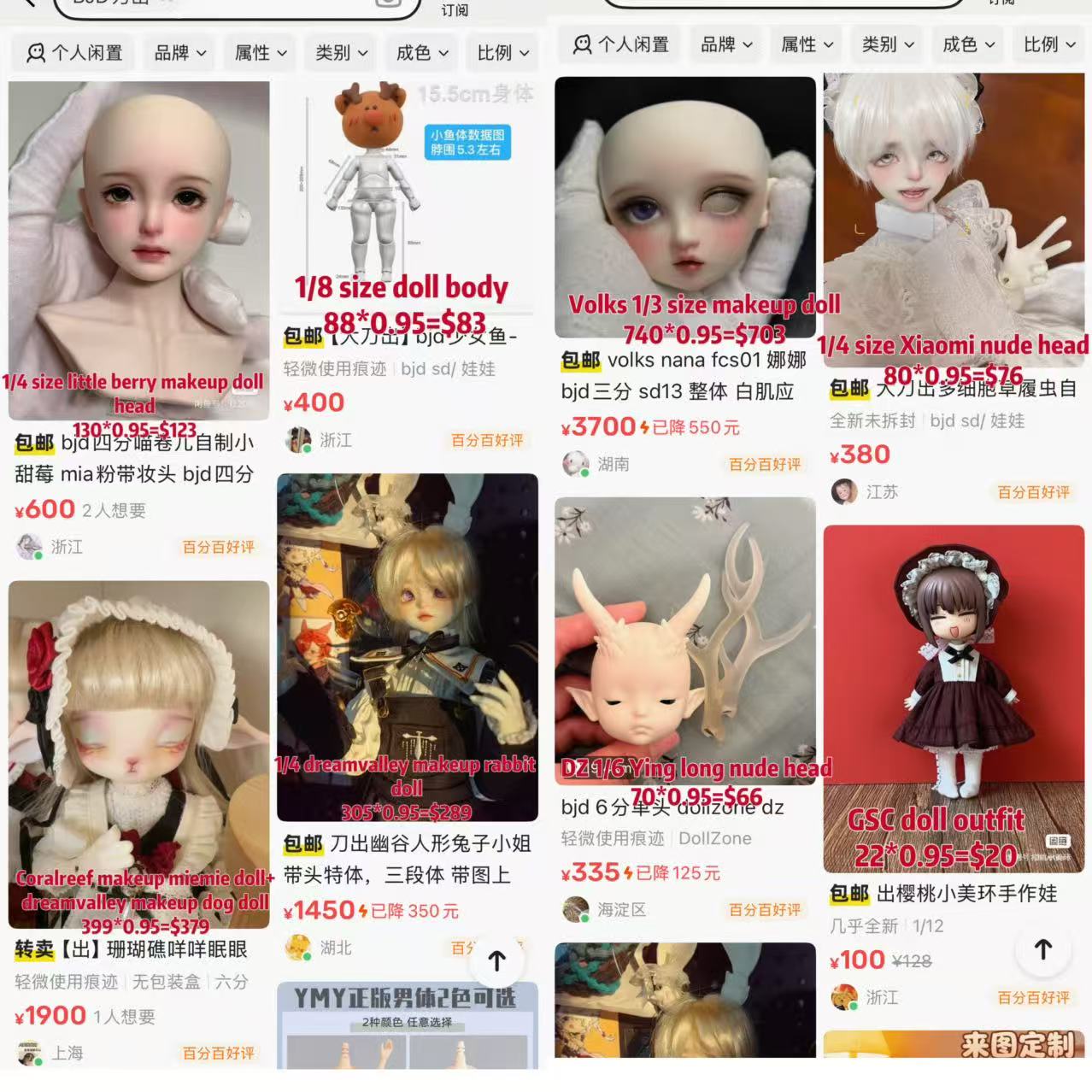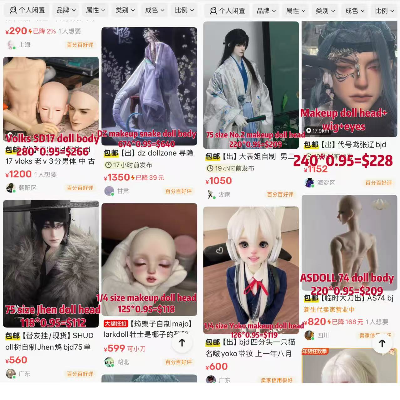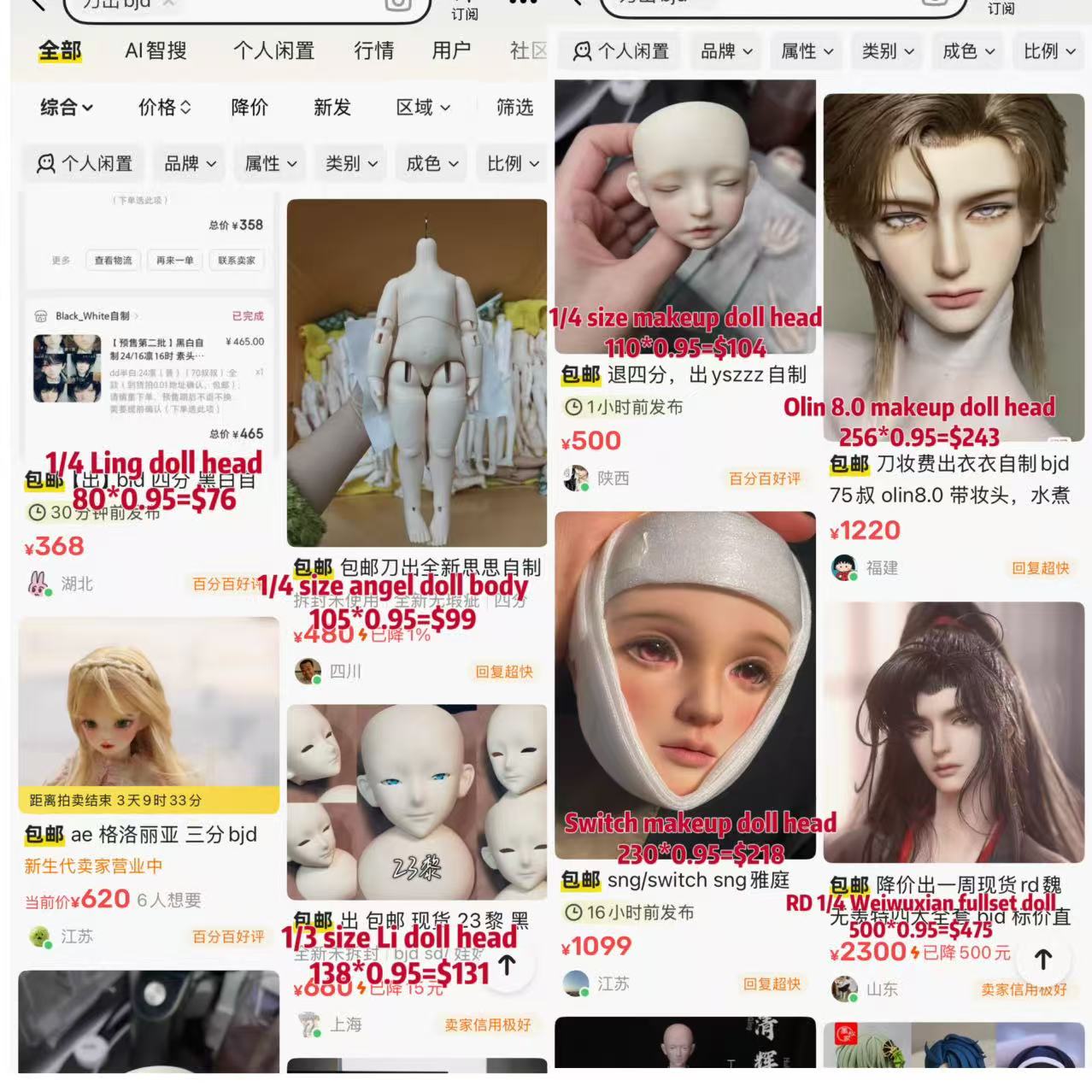 If you want to buy the head or body separately, or you have other request, please mail me first,