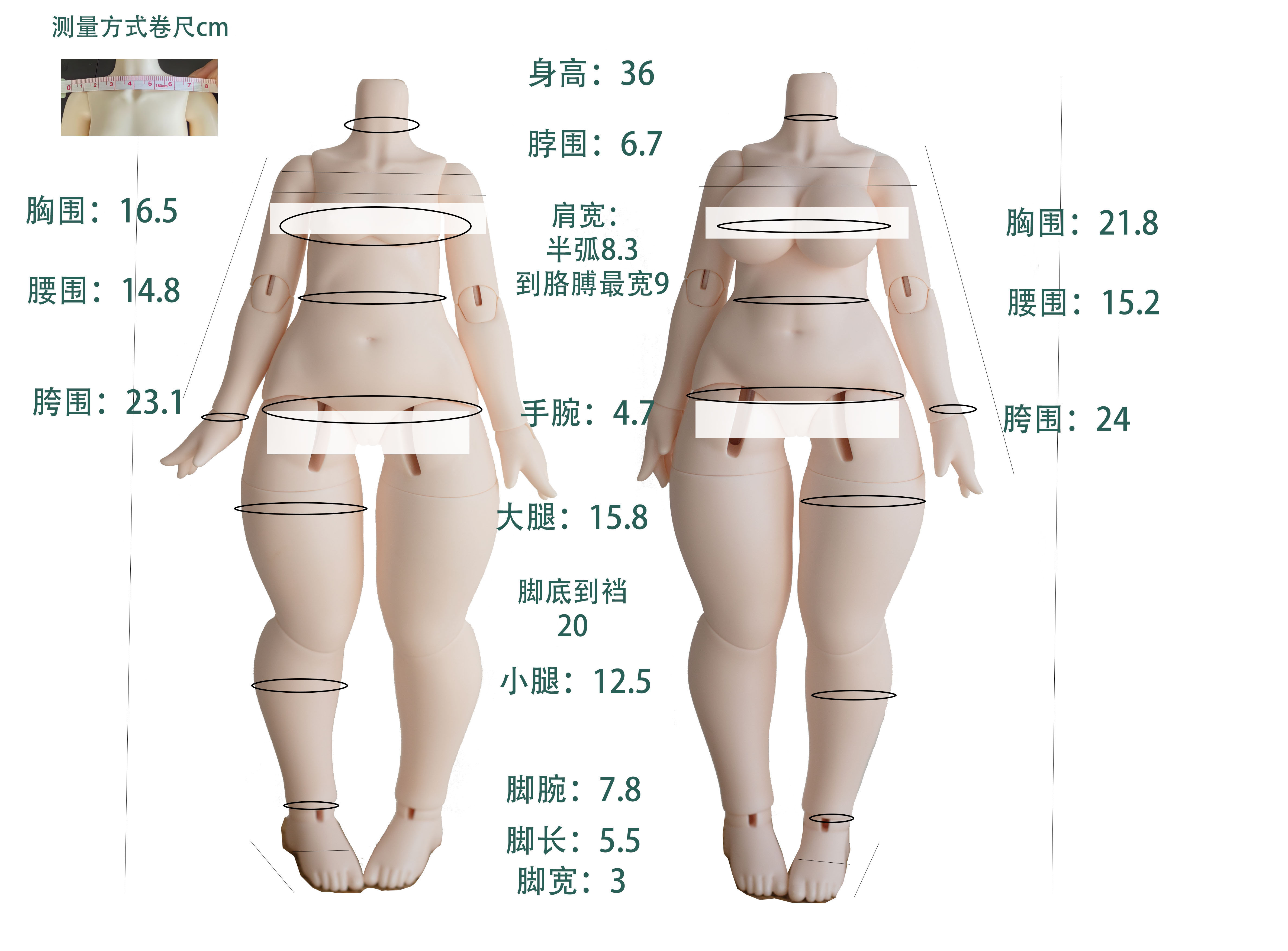nude body is about 36cm, if you put the head on, it is about 41-42cm~