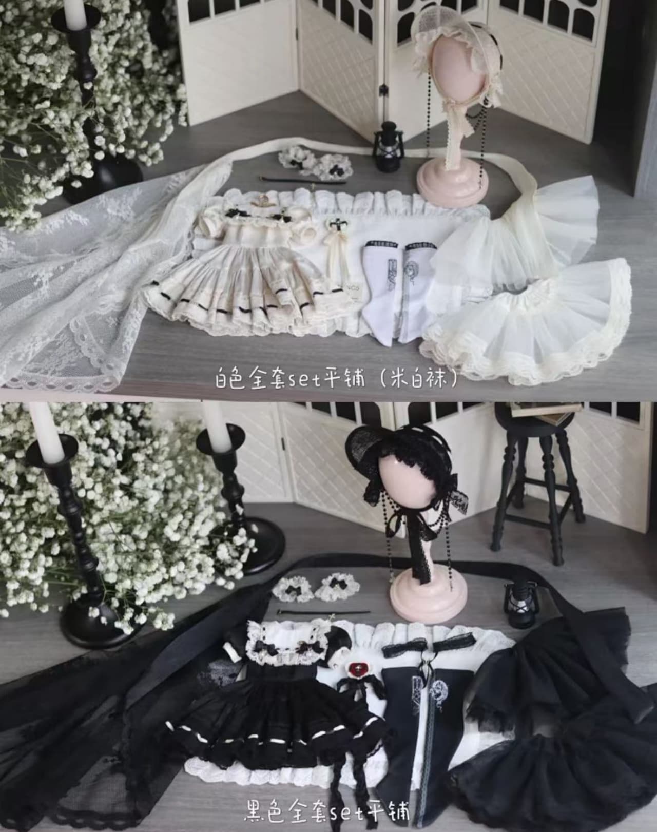 the black set has long socks~